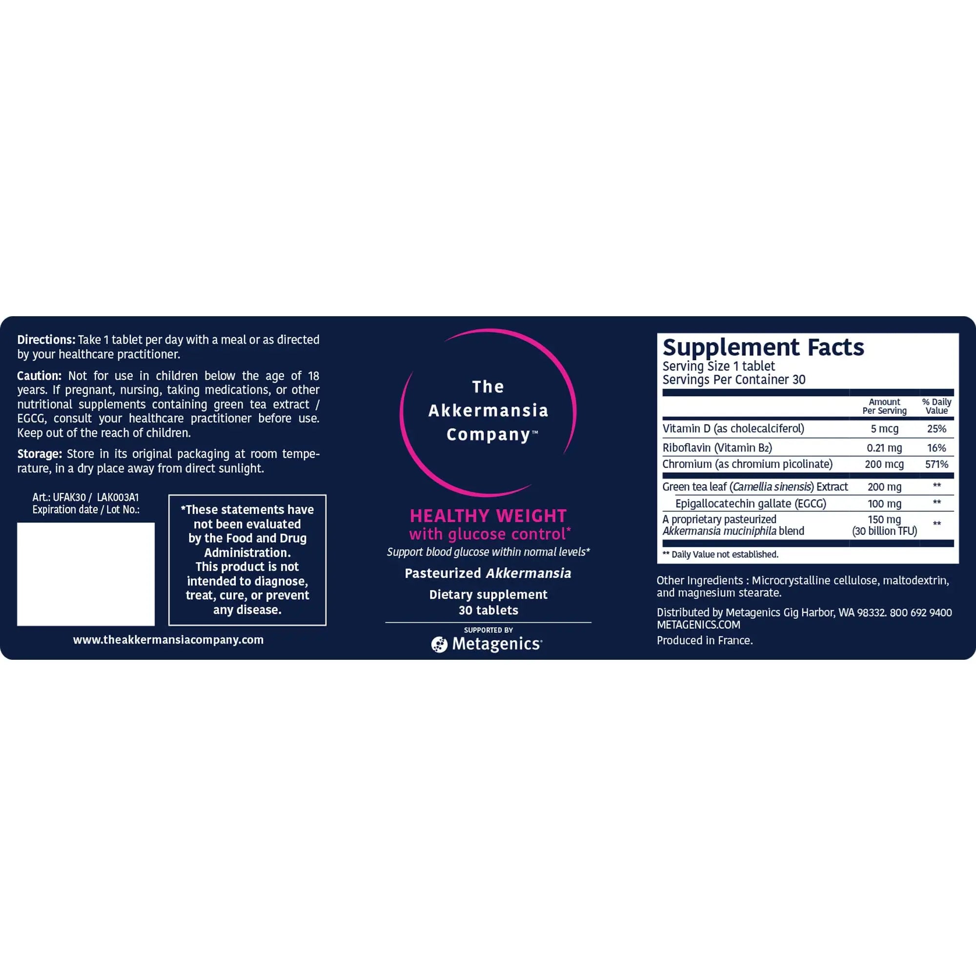 Akkermansia muciniphila is a unique bacterium enriched in the mucus layer of the gut. Higher levels of Akkermansia in the body have been linked to improved metabolism and glucose metabolism, along with improved cardiovascular health, while lower levels have been associated with excess body fat.* Clinically shown to have a positive impact on weight maintenance* Includes chromium for healthy glucose metabolism* Contains EGCG (from green tea extract) to provide additional support for weight maintenance (in concert with a diet and exercise program)
